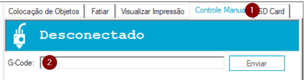 Uma vez instalado e configurado, conecte a sua impressora ao Repetier e no campo Controle Manual -> Gcode você manda os seguintes comandos: