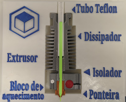 A imagem a seguir ilustra um corte de um bico extrusor montado corretamente: